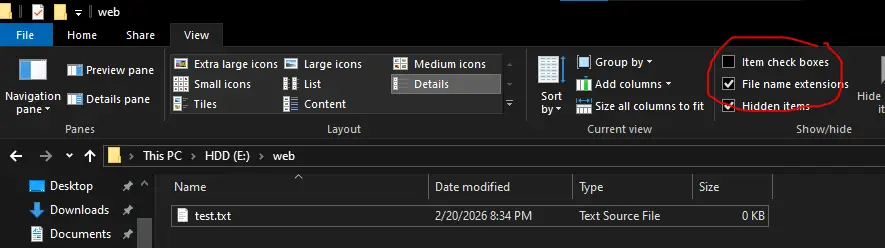 - File name extensions: Show extensions for better file management